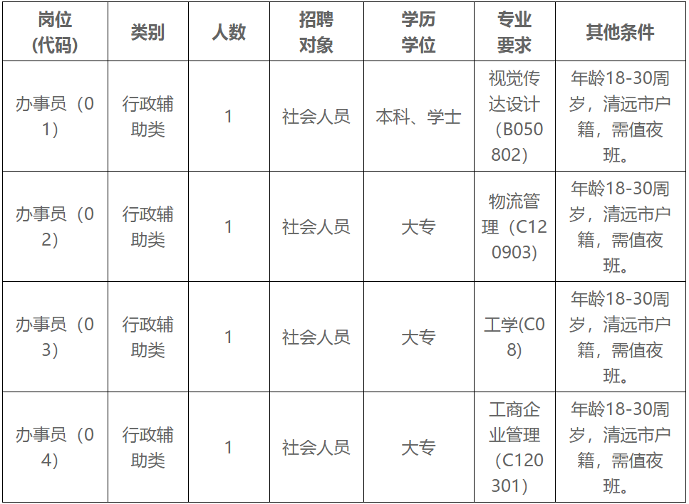 根據(jù)工作需要,清遠(yuǎn)市清城區(qū)源潭鎮(zhèn)人民政府面向社會(huì)公開(kāi)招聘專項(xiàng)工作聘員4名,F(xiàn)將有關(guān)事項(xiàng)公告如下: