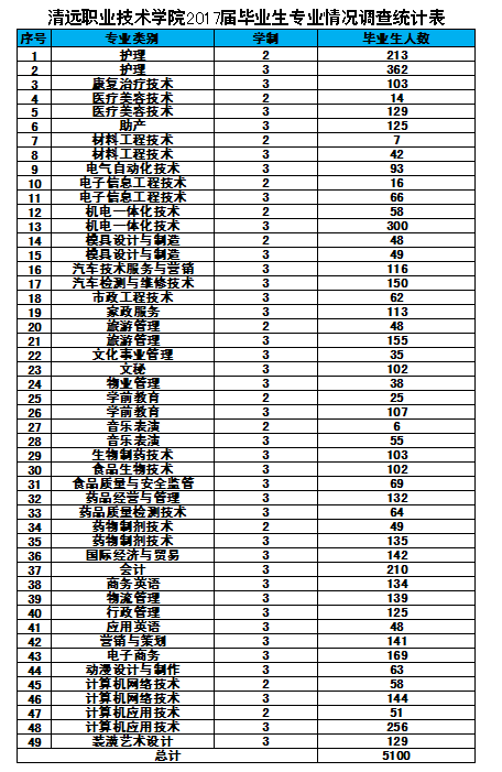 六、清遠(yuǎn)職業(yè)技術(shù)學(xué)院2017年畢業(yè)生相關(guān)專業(yè)信息詳情請登錄清遠(yuǎn)人力資源網(wǎng)m.fsyjyx.com查閱。
