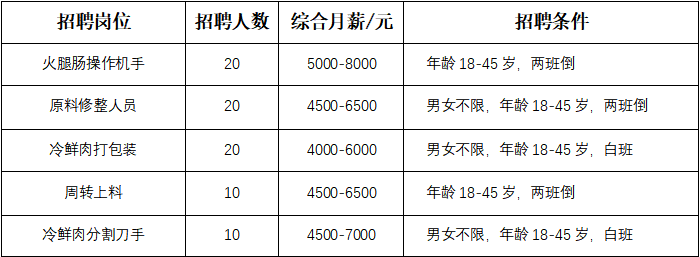 清遠(yuǎn)雙匯食品有限公司誠聘
